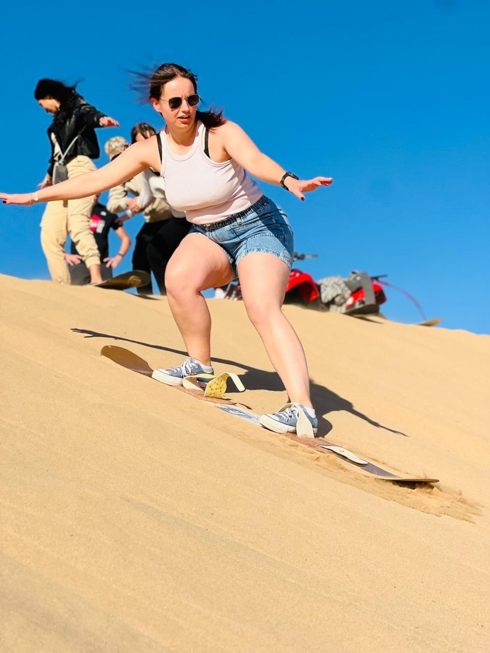 Contact us on WhatsApp or book directly through our website for an unforgettable sandboarding adventure in Timlaline Desert.